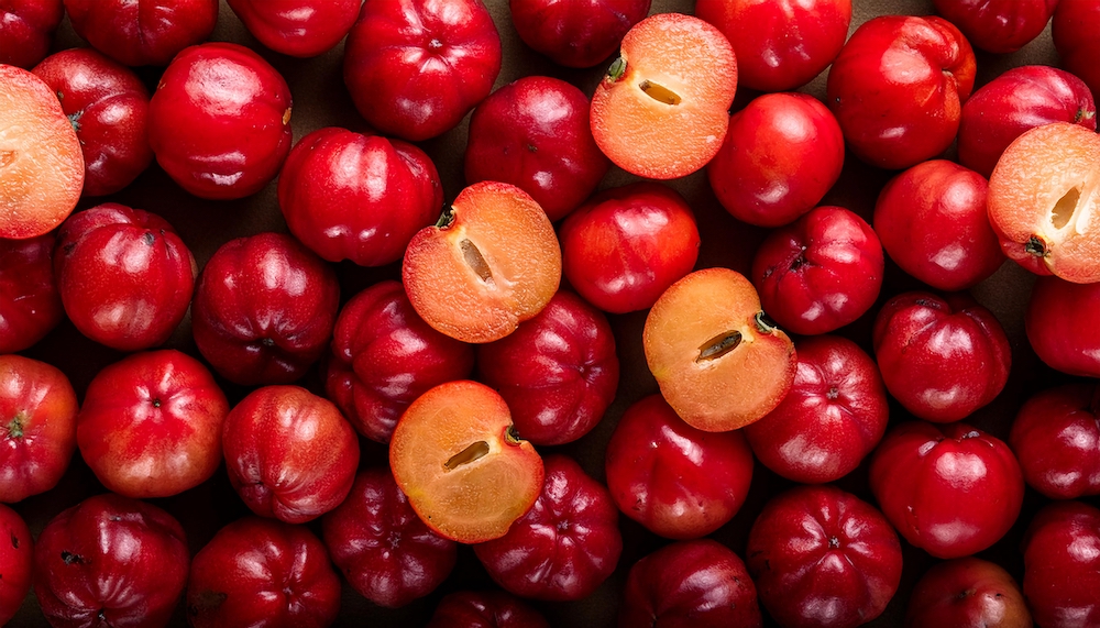 A acerola é uma das frutas mais conhecidas pelo elevado teor de vitamina C, podendo conter até 80 vezes mais do que a laranja. Ao ser transformada em pó por meio de processos tecnológicos, mantém as propriedades nutricionais e ganha versatilidade para ser incorporada em diferentes formulações.